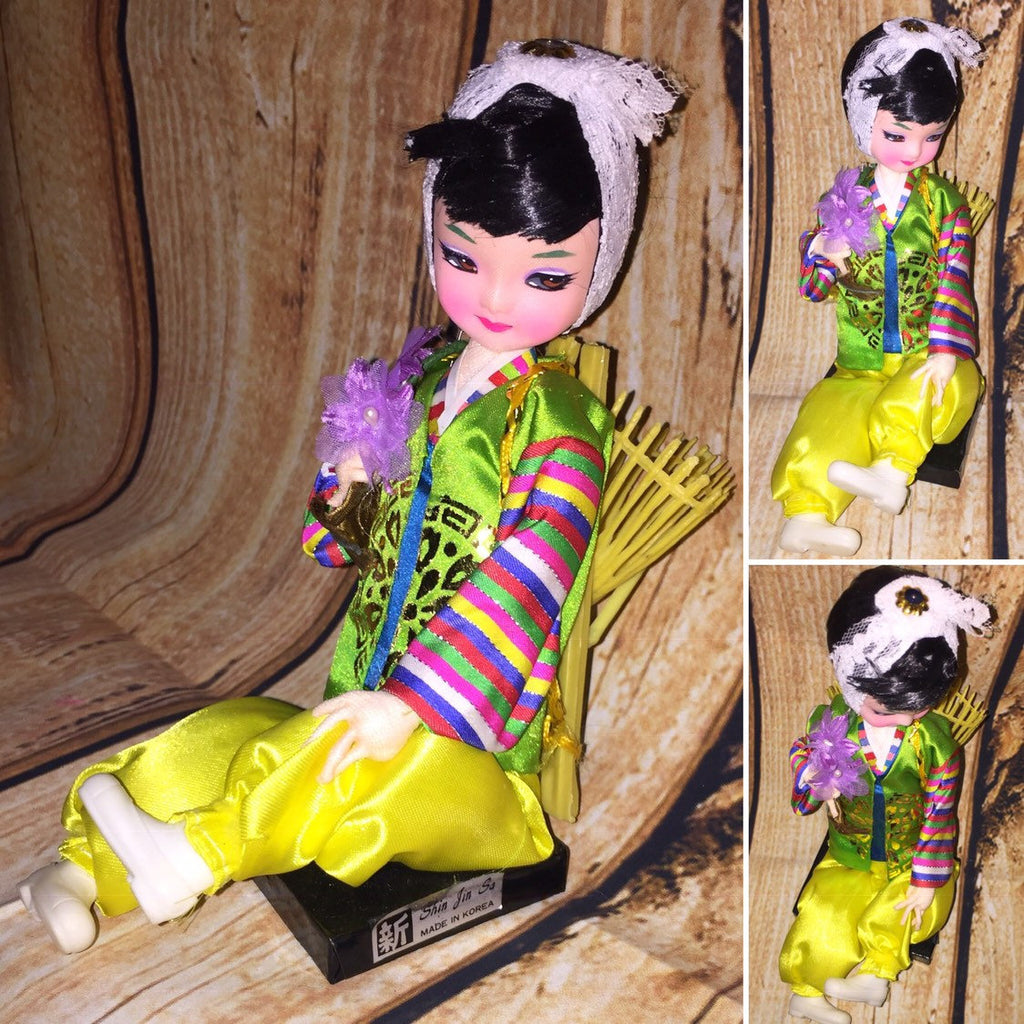 This lovely and beautiful vintage oriental Korean doll in sitting position by Shin Jin So.