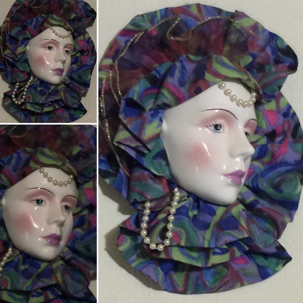 A high fashion adorable vintage mask of a lady’s face for your home decor or for your office.